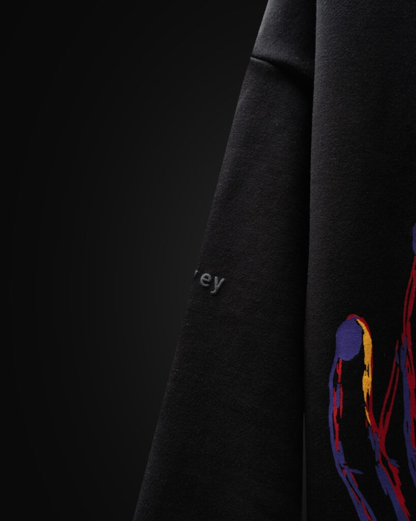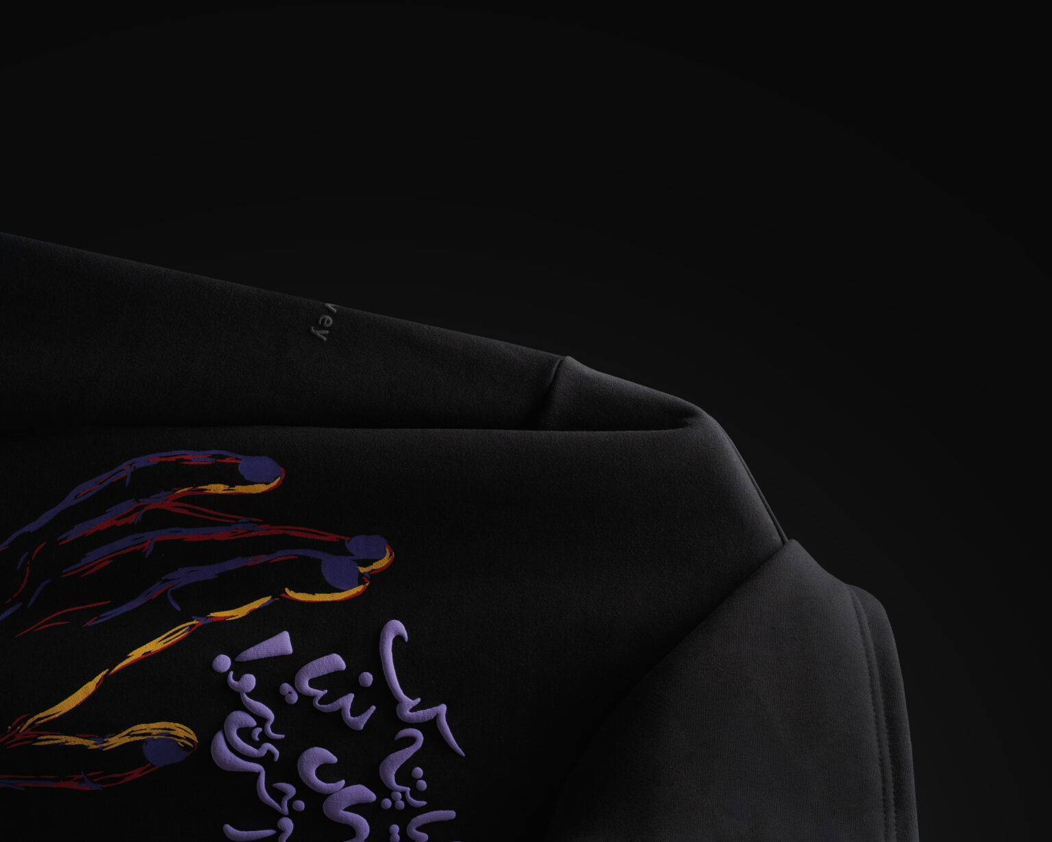 textured puff print turns these fragments into tactile stories of courage, reflection, and possibilityBuy Nowcrafted from rnwey’s custom premium knit, this hoodie features a 100% cotton shell fleece with a rich yet substantial hand feel. The heavyweight 410 GSM build delivers a refined structure and understated luxury like never beforeContactMain Storegestures of possibilityspace in betweensuspended couragethis piece traces that suspended space, where every step is fleeting yet full of possibility